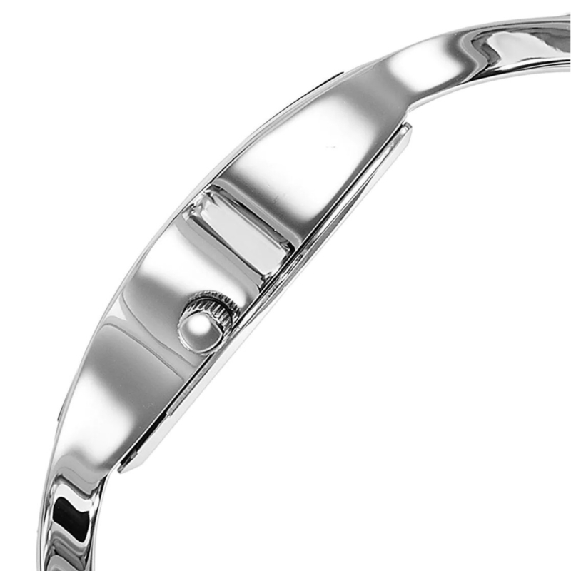 • Strap style: Silver-toned metallic crystal-studded bracelet-style strap,secured with a foldover clasp