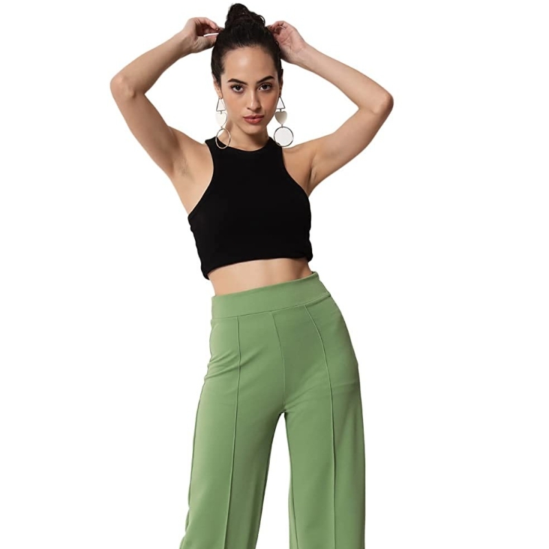 KOTTY المرأة الصلبة مزيج البوليستر ضوء الطحلب الأخضر بنطلون