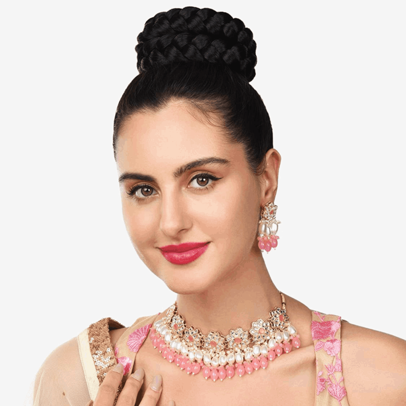 الأحجار الوردية وطبقة الخرز العنقودي كوندان الزهور قلادة قلادة