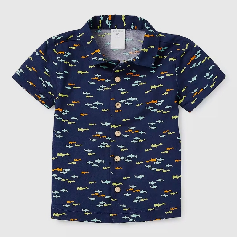 Available in five different colors and trendy floral, dino, shark prints, this half-sleeve shirt makes for a great pick be it playdate, special occasion, party or any outing.