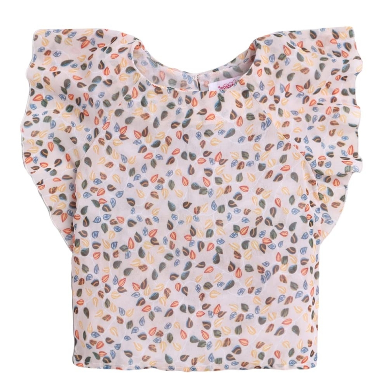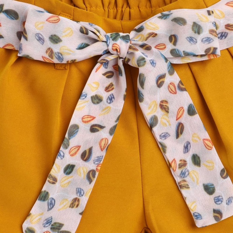 Hopscotch Girls Polyester Floral Print Blouse and Shorts Set in Yellow Color