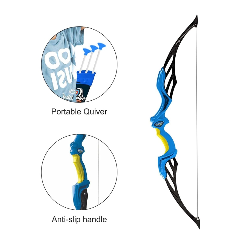 INCLUDES : 3 Suction Cup Arrows, 1Archery Set, 1 Quiver, 1 Target , Complete shooting kit.